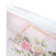 Обложка фотоальбома выполнена в розовых тонах с изображением цветов, а его листы склеены в единый блок. Размер альбома – 12х16 см.