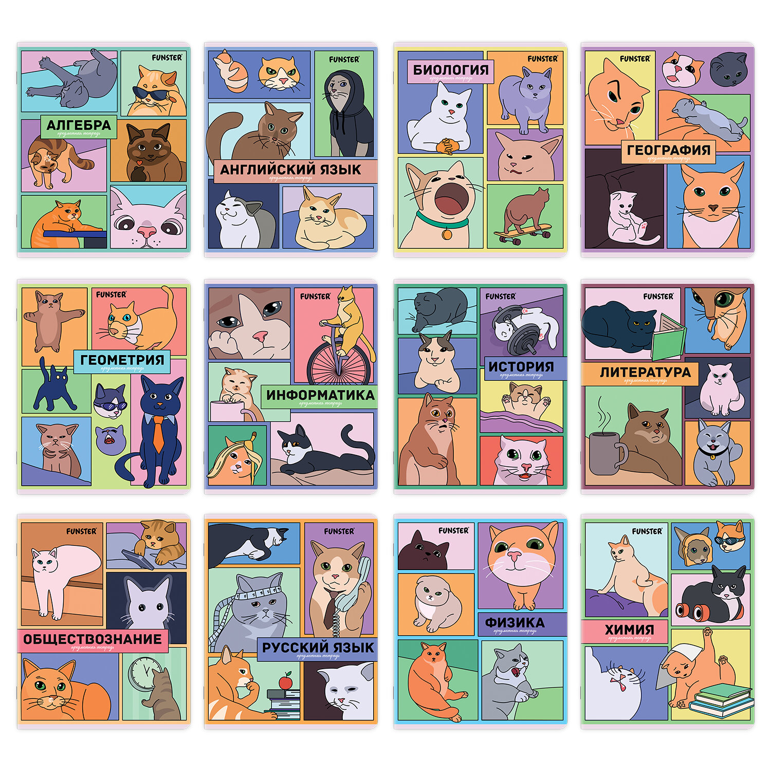 Предметные тетради FUNSTER из серии «МЕМНЫЕ КОТЫ» со справочным материалом предназначены для учащихся средних и старших классов.