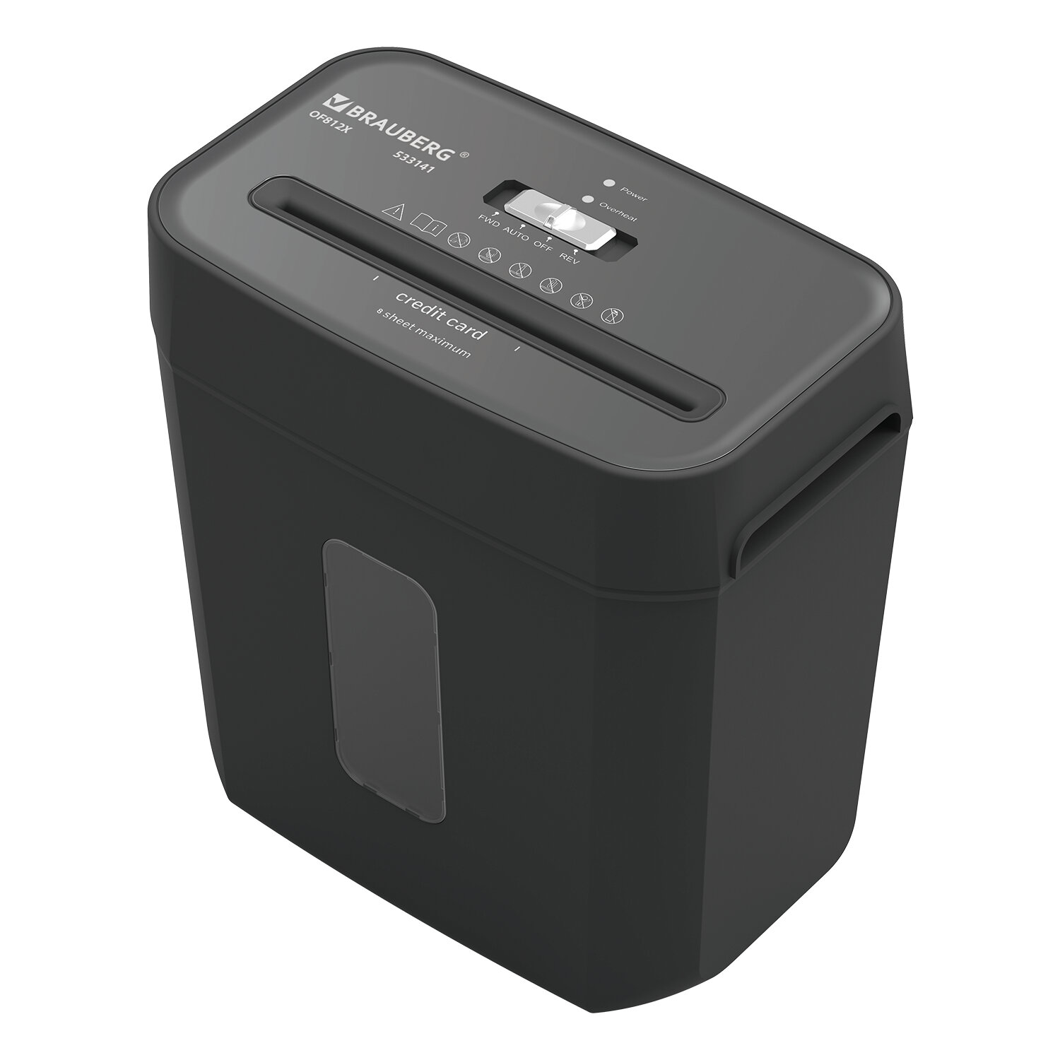 Уничтожитель документов (шредер) BRAUBERG OF-812X предназначен для уничтожения документов и пластиковых карт (банковских, дисконтных и прочих), потерявших актуальность.
